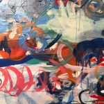 As the previous paintings in the ‘Le tourbillon de la vie’ paintings began to settle into my mind, I began to pull back and tighten the composition into a more traditional landscape of cloud formations, and introduce a compressing of foreground and background. Yet I still wanted to retain the intensity and vigour of brushstroke and energy that was explored in my previous work. This new painting which I call ‘Visitation’ was what surfaced.